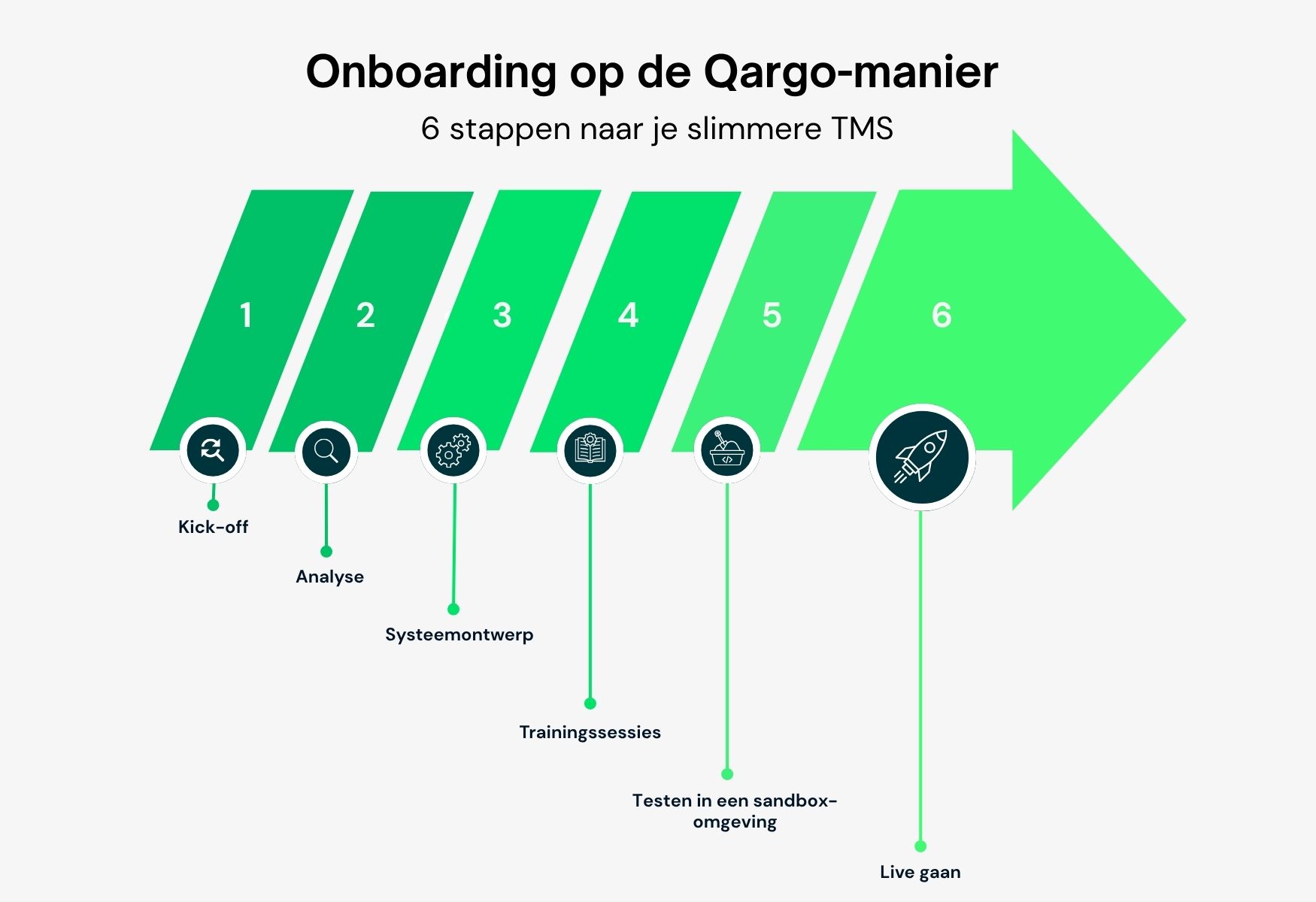 Bij Qargo gaat onboarding niet over het afvinken van vakjes. Het gaat erom je team het vertrouwen, de kennis en de tools te geven om vanaf de eerste dag het meeste uit je nieuwe TMS te halen.